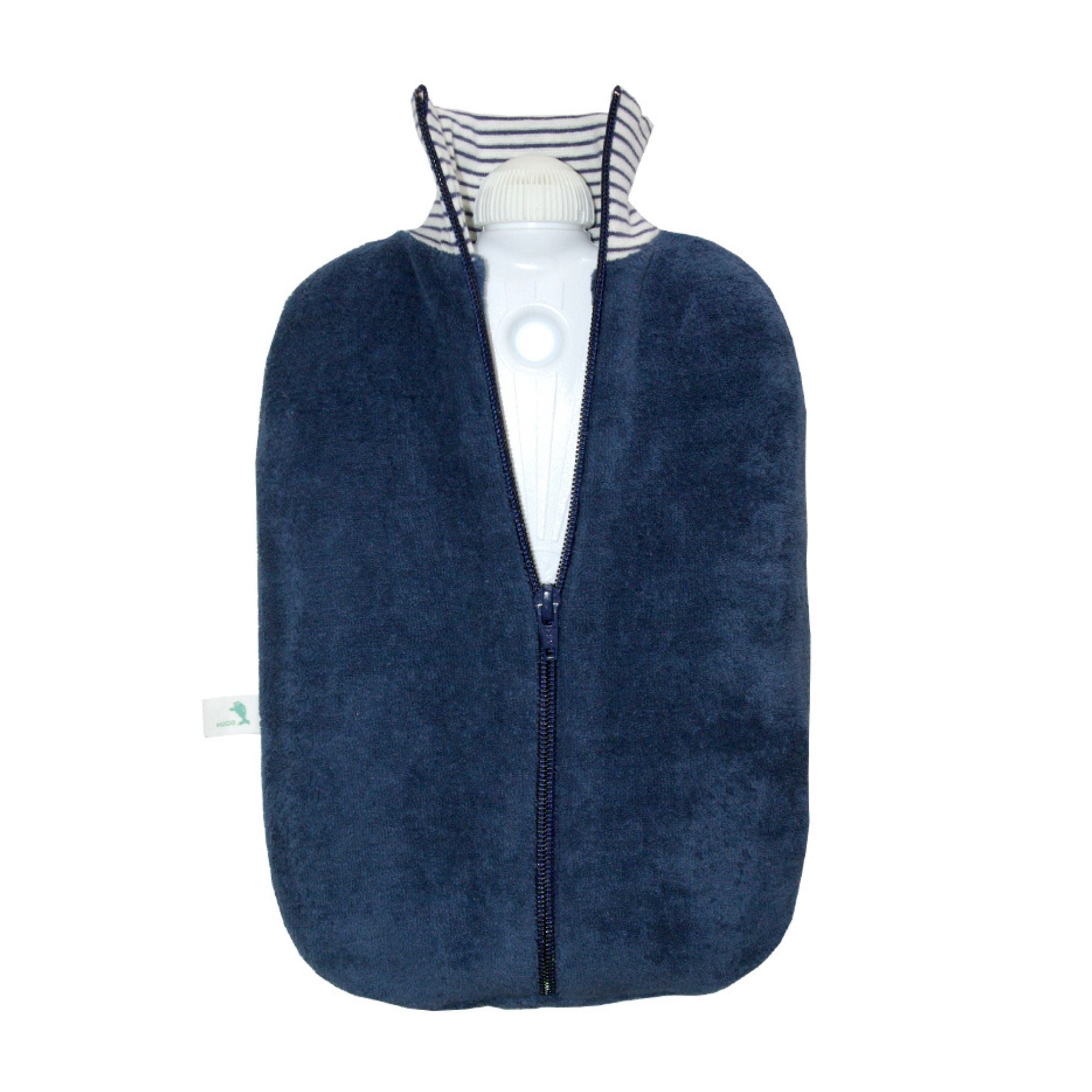 2 Litre Eco Hot Water Bottle with Marine Blue Organic Cotton Cover (rubberless)