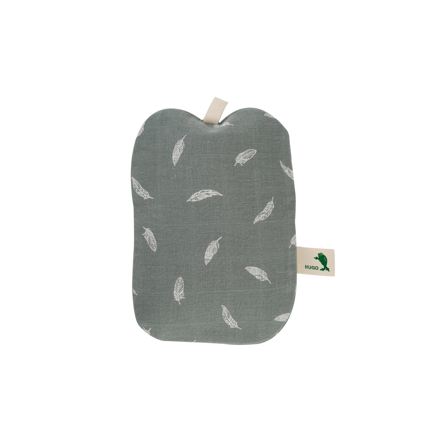 0.2 Litre Luxury Mini Hot Water Bottle with Pastel Green Feather Organic Cotton Cover (rubberless)
