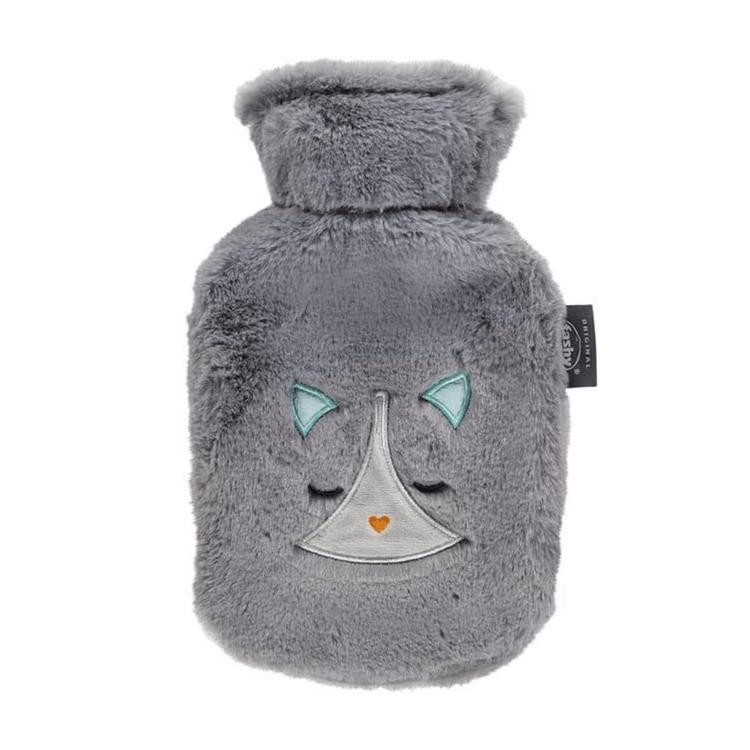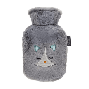 0.8 Litre Fashy Hot Water Bottle with Plush Grey Cat Cover