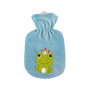 This 0.8 litre hot water bottle comes with a blue frog cover.