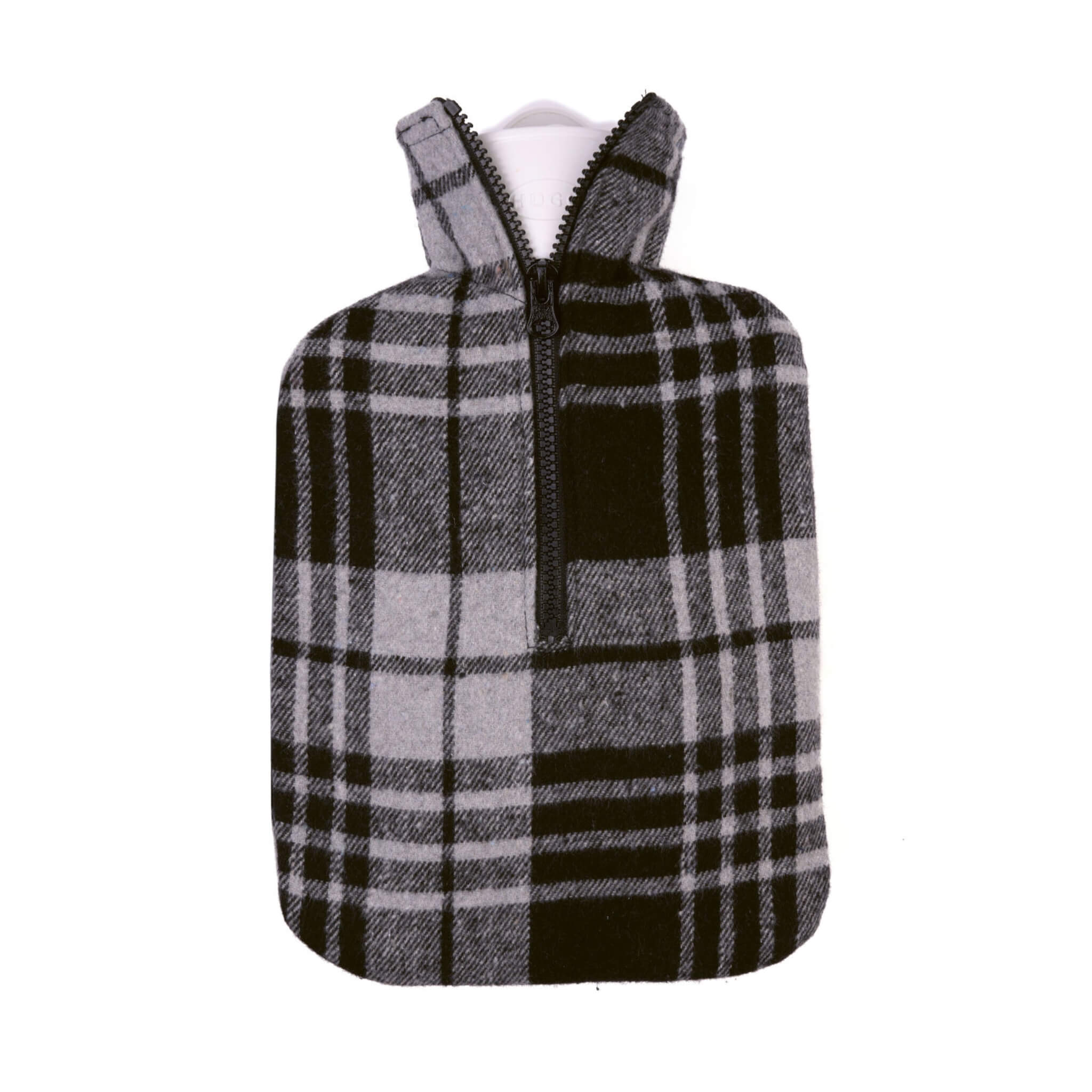 - 1.8 litre hot water bottle with grey and black check flannel cover