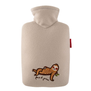 1.8 Litre Classic Hot Water Bottle with Sloth Beige Fleece Cover (rubberless)