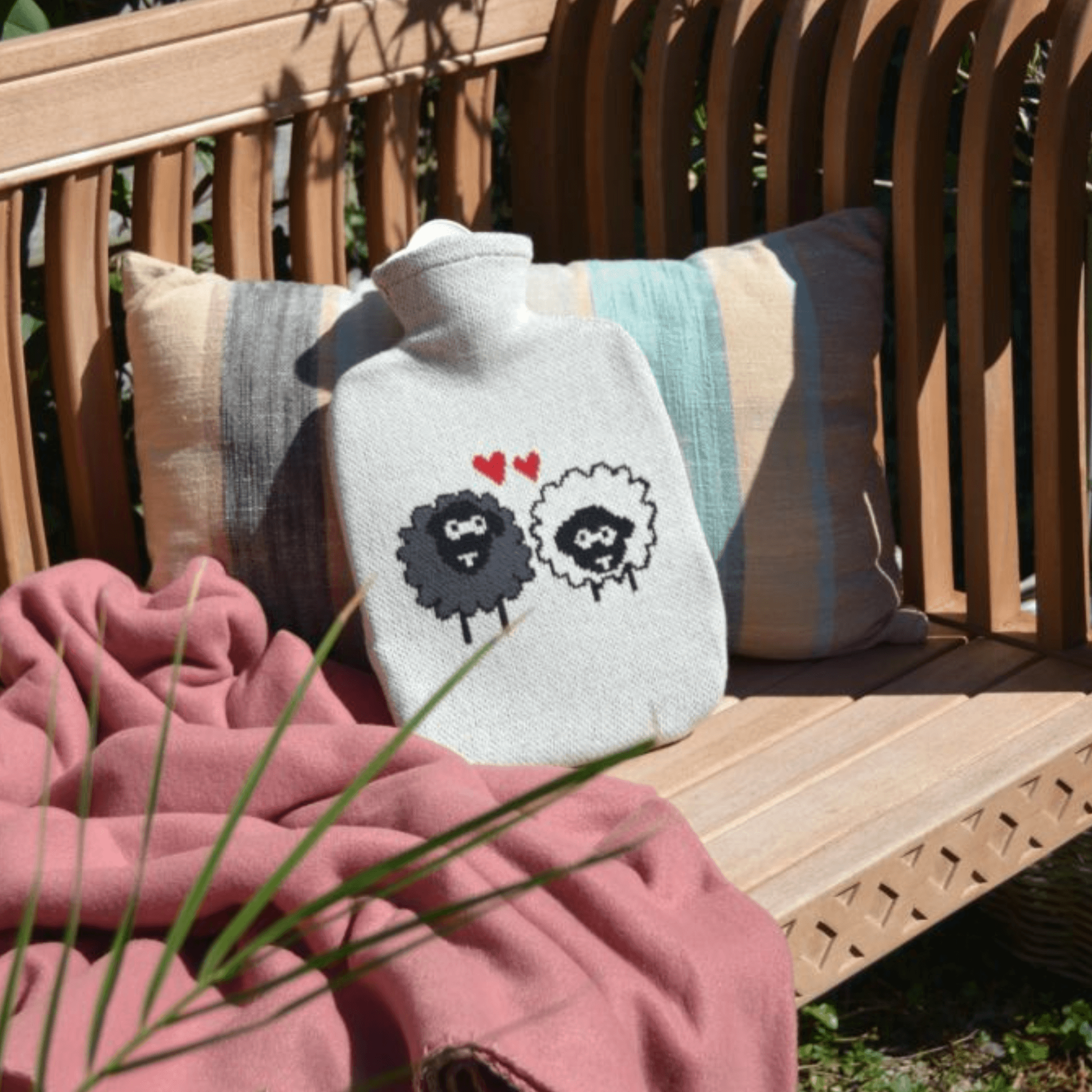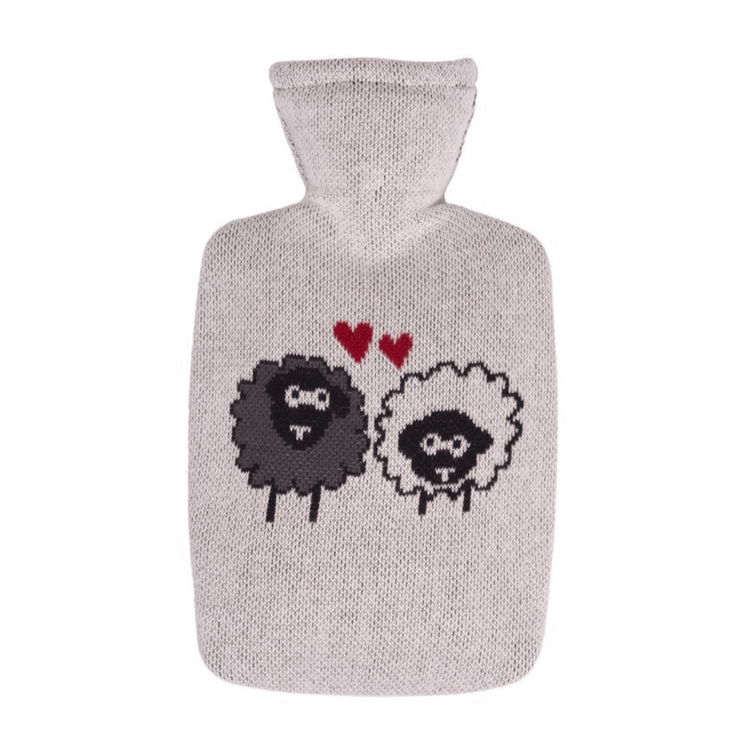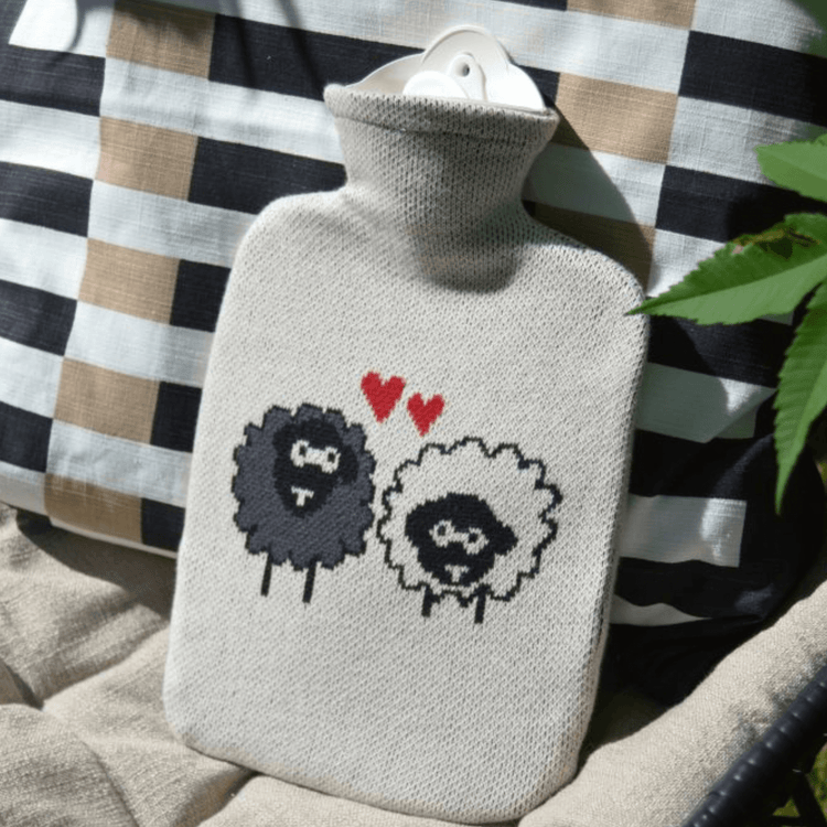 1.8 Litre Classic Plant Based Hot Water Bottle with Sheep Knitted Organic Cotton Cover (rubberless)