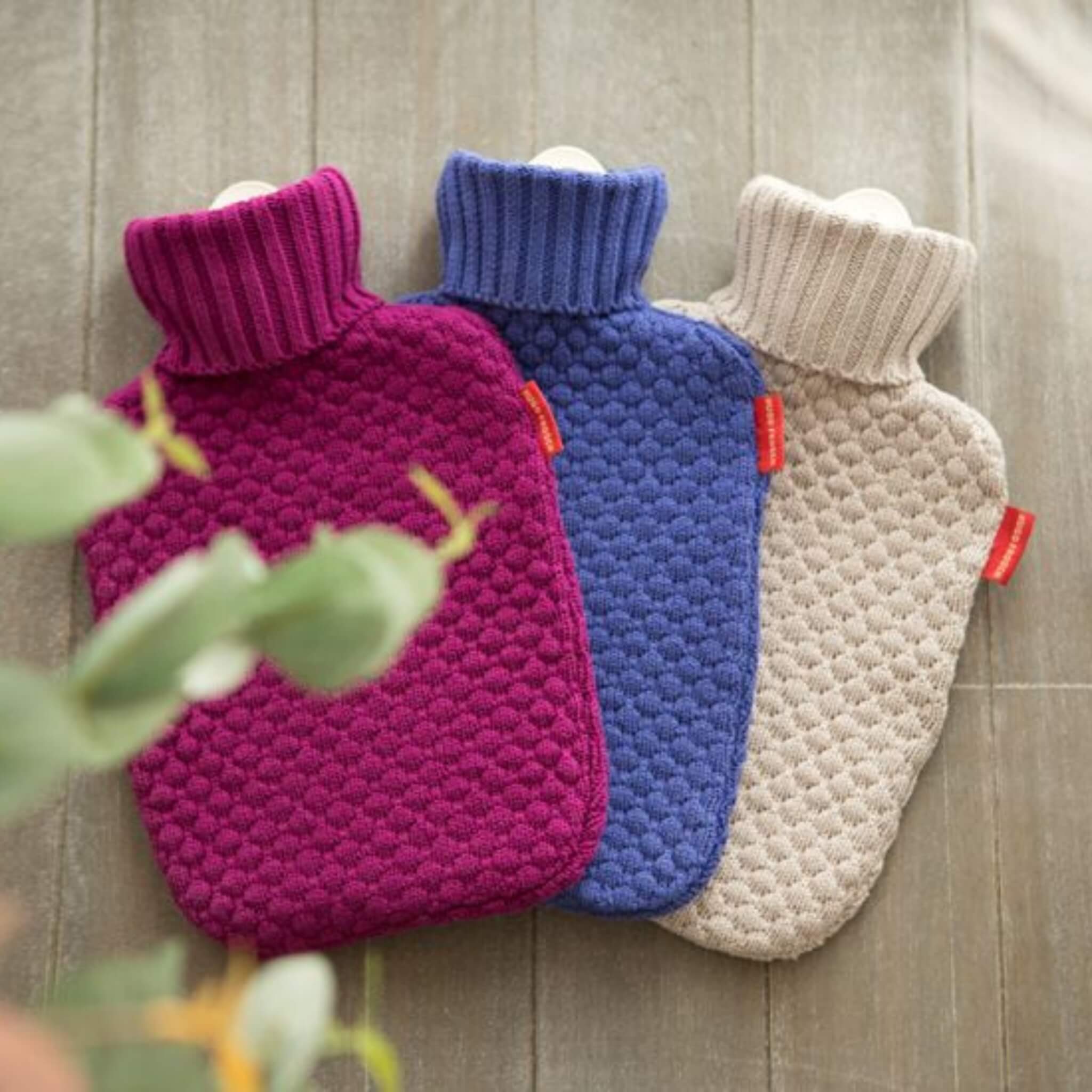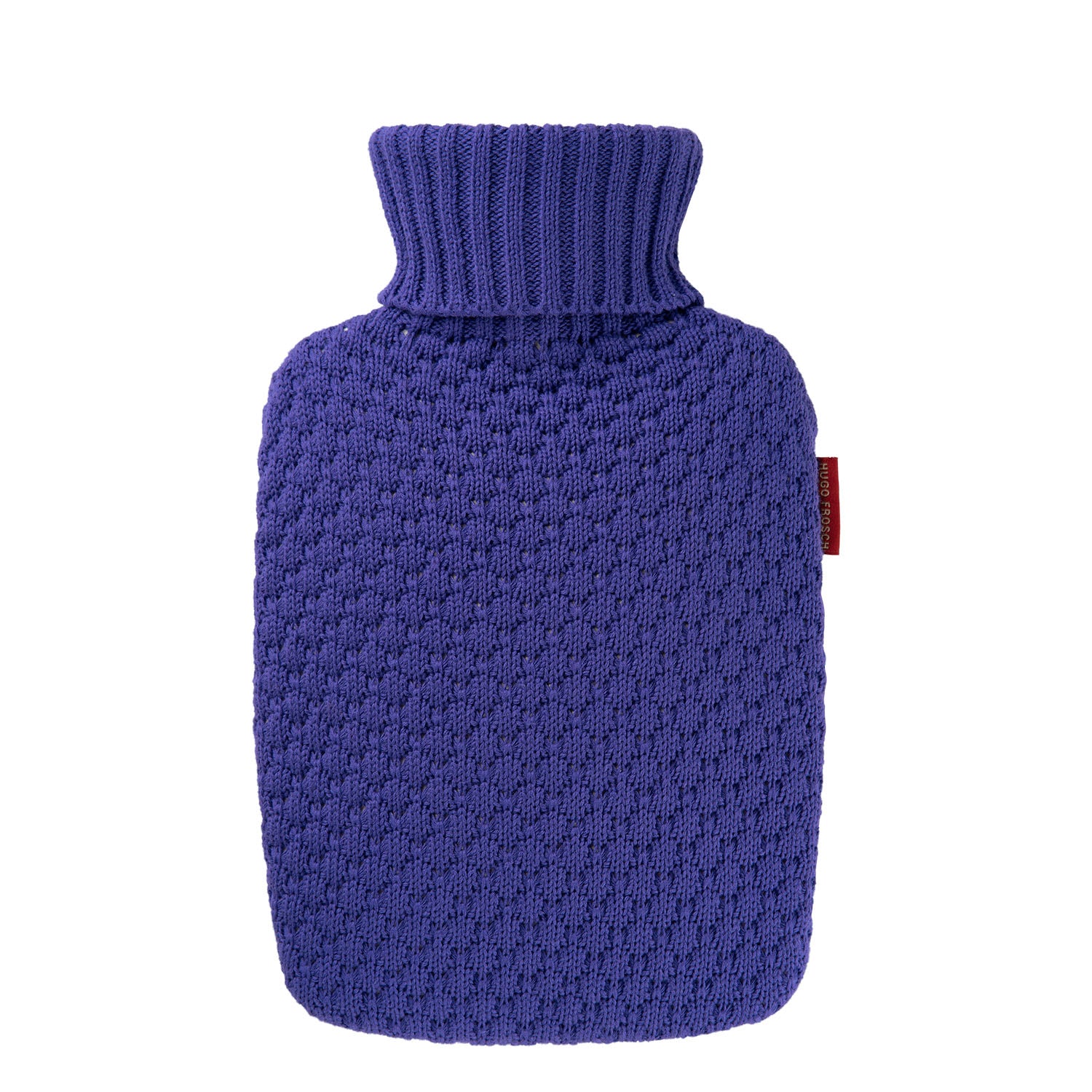 1.8 Litre Classic Plant Based Hot Water Bottle with Blueberry Knit Organic Cotton Cover (rubberless)