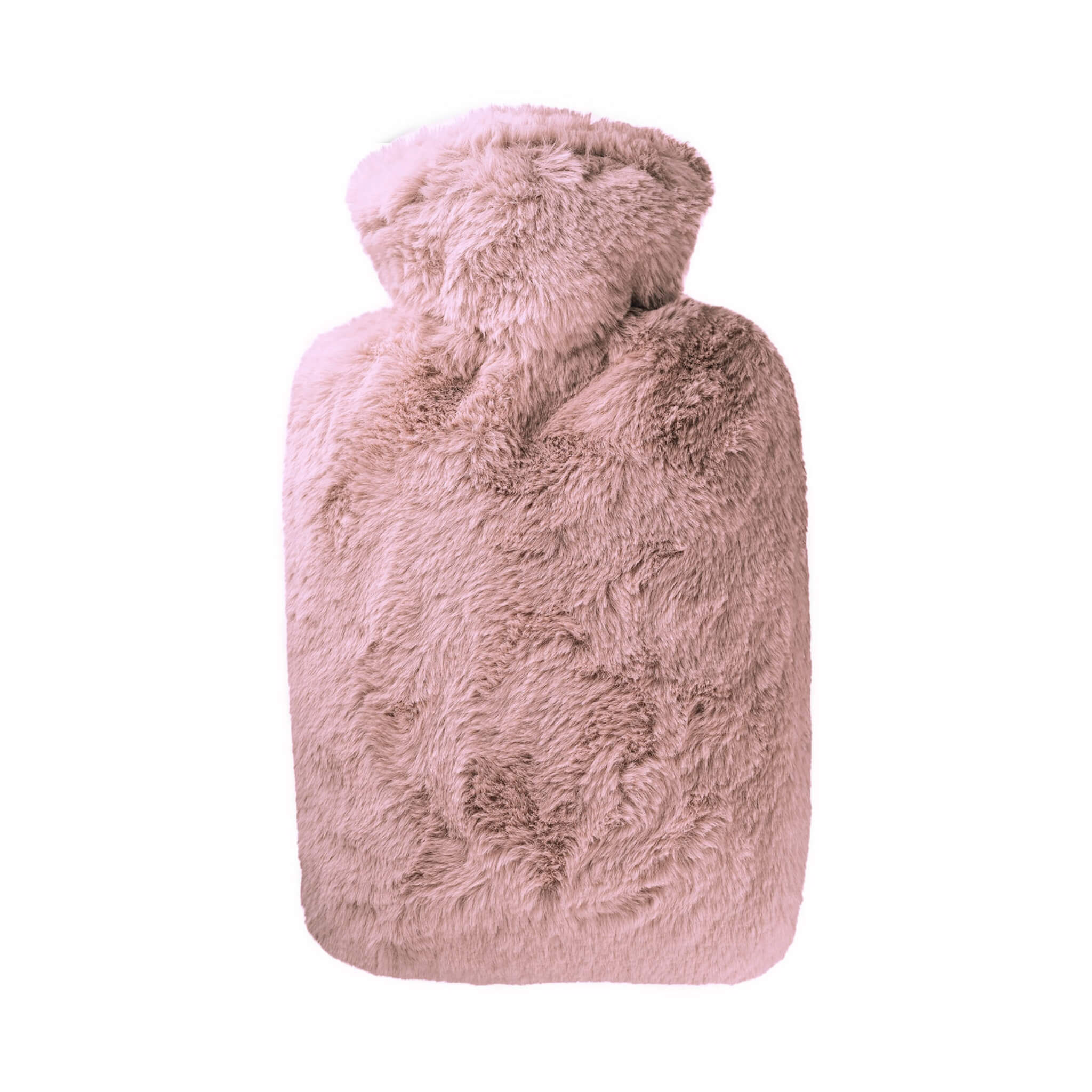 1.8 Litre Hot Water Bottle with Rose Pink Long Hair Luxury Faux Fur Cover (rubberless)