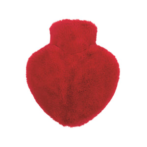 1 Litre Heart Shaped Hot Water Bottle with Fire Red Long Hair Faux Fur Cover (rubberless)