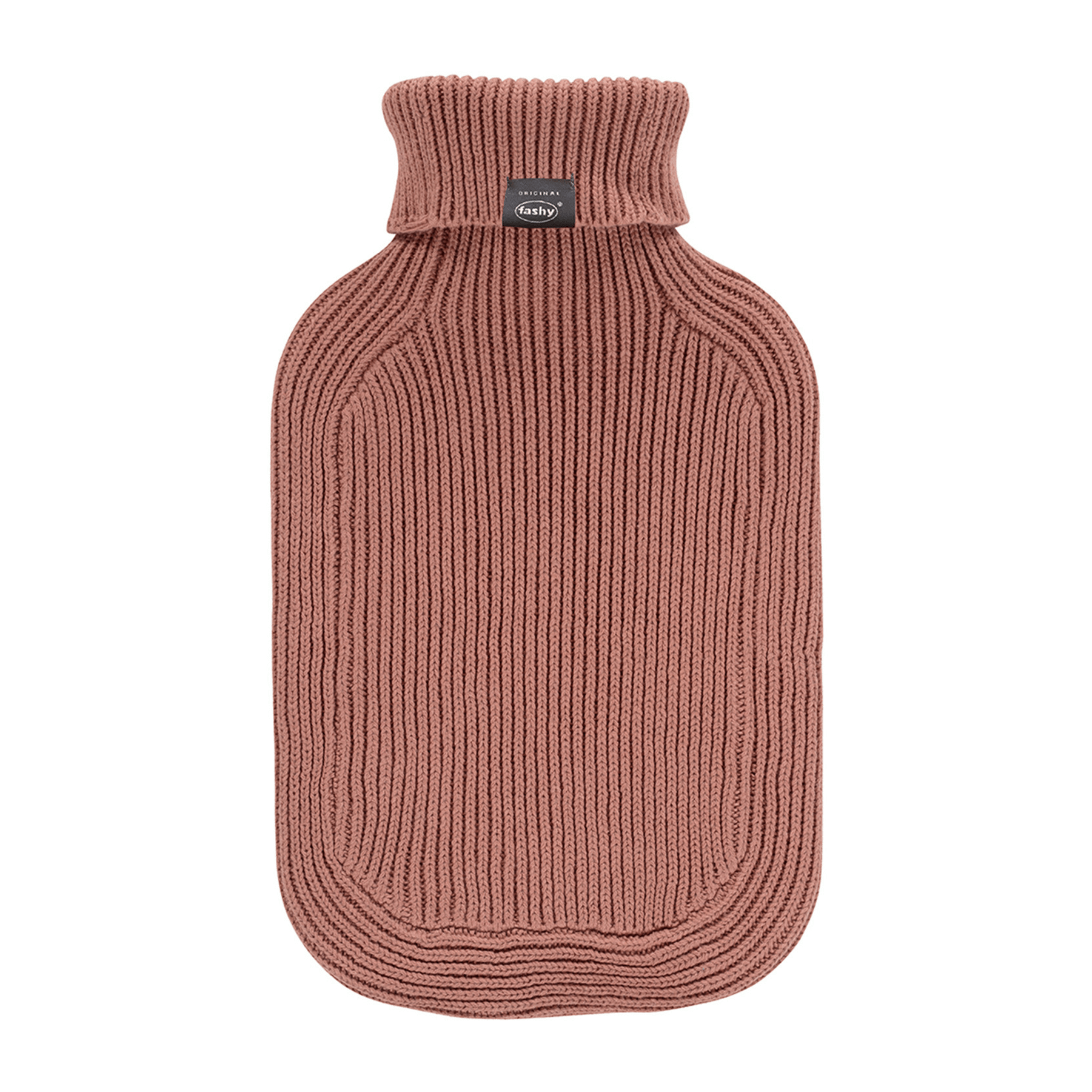 - 2 Litre fashy hot water bottle with a knitted cafe au lait turtle neck 100% cotton cover