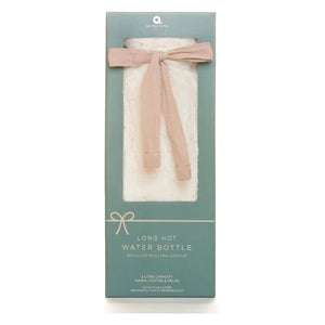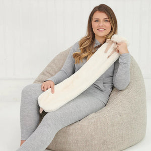 2 Litre Long Hot Water Bottle with Cream Faux Fur Cover and Ribbon Tie