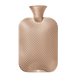 This 2 litre metallic copper single ribbed hot water bottle features massage knobs on one side.
