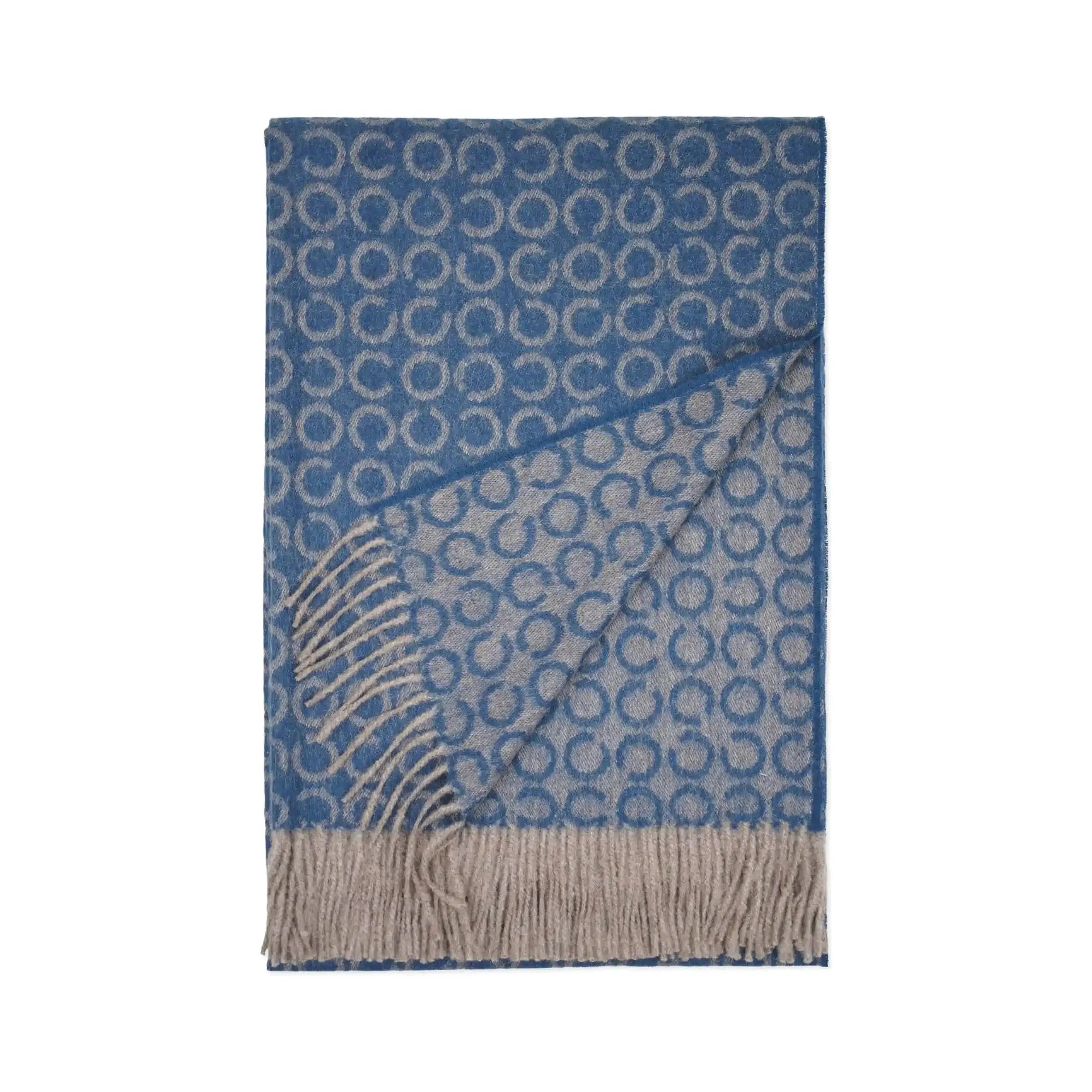 Indigo Blue and Grey 100% Baby Alpaca Wool Sidney Throw (200cm x 130cm)