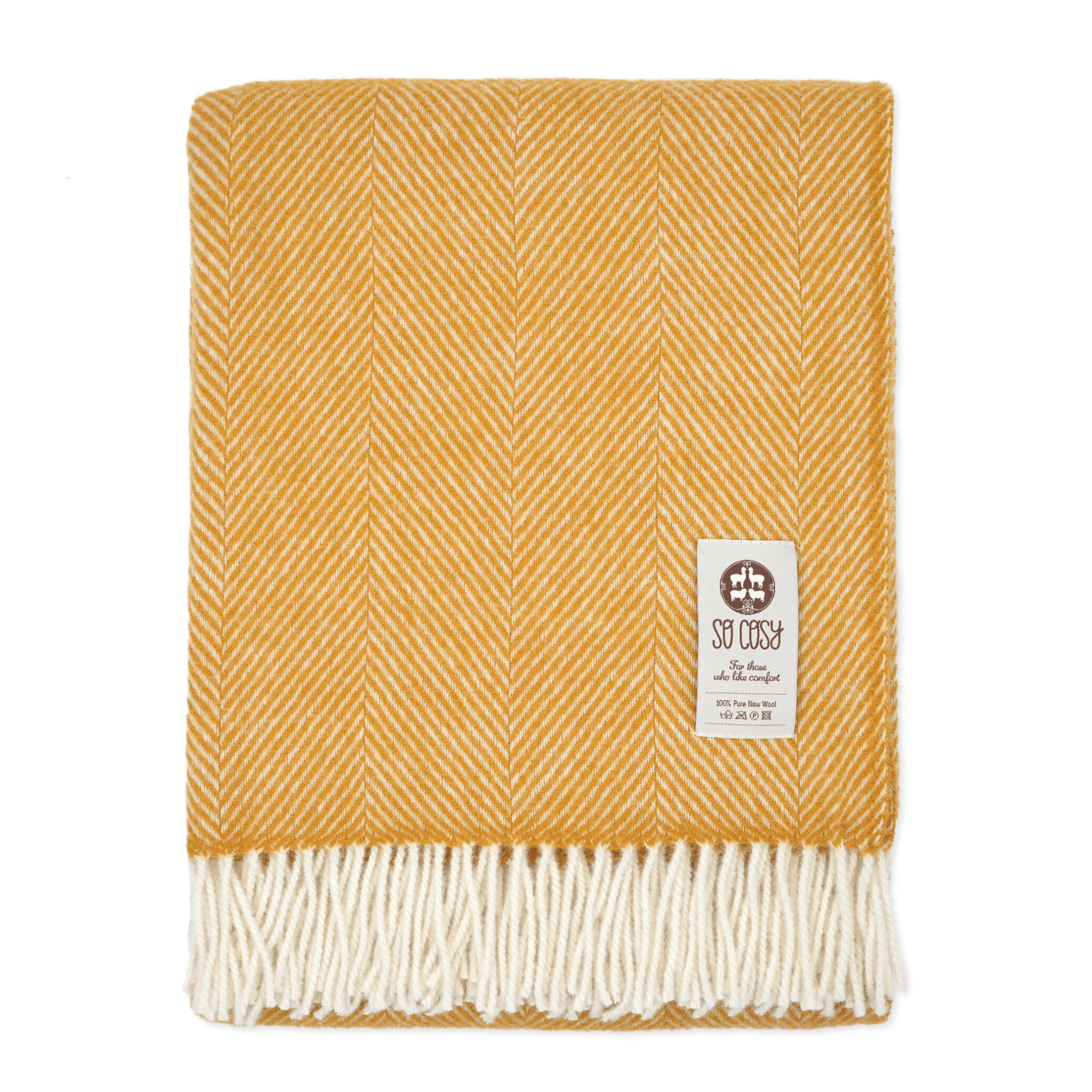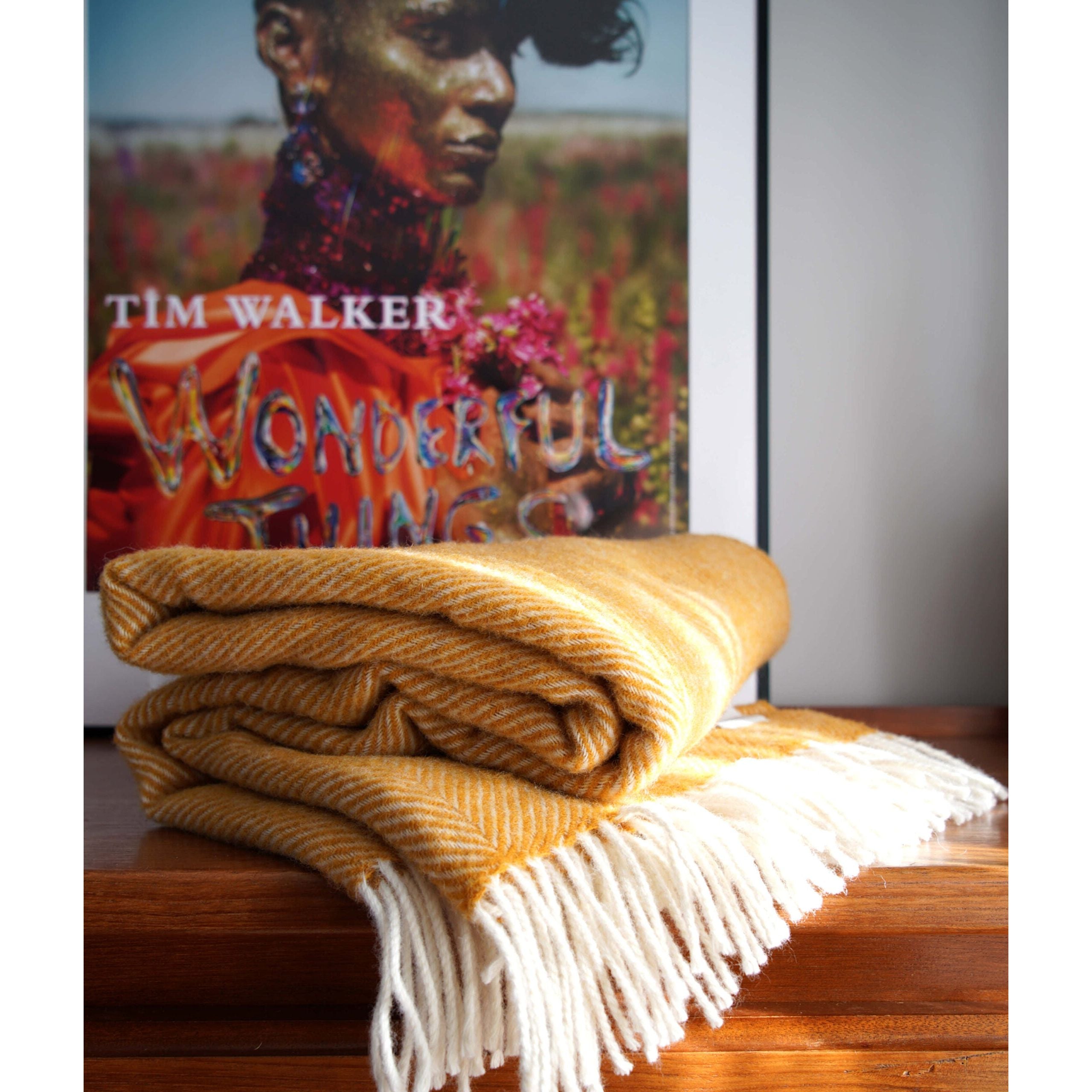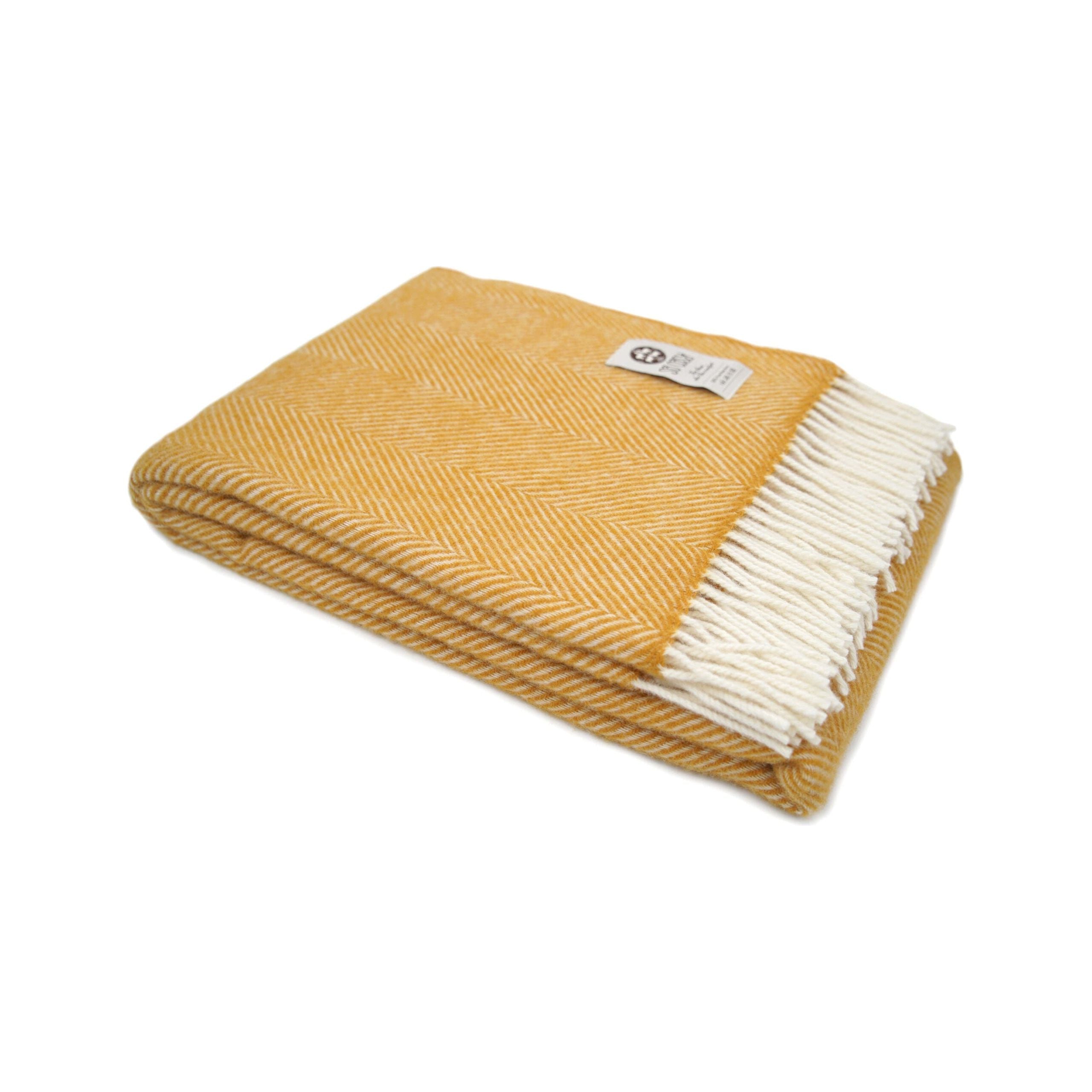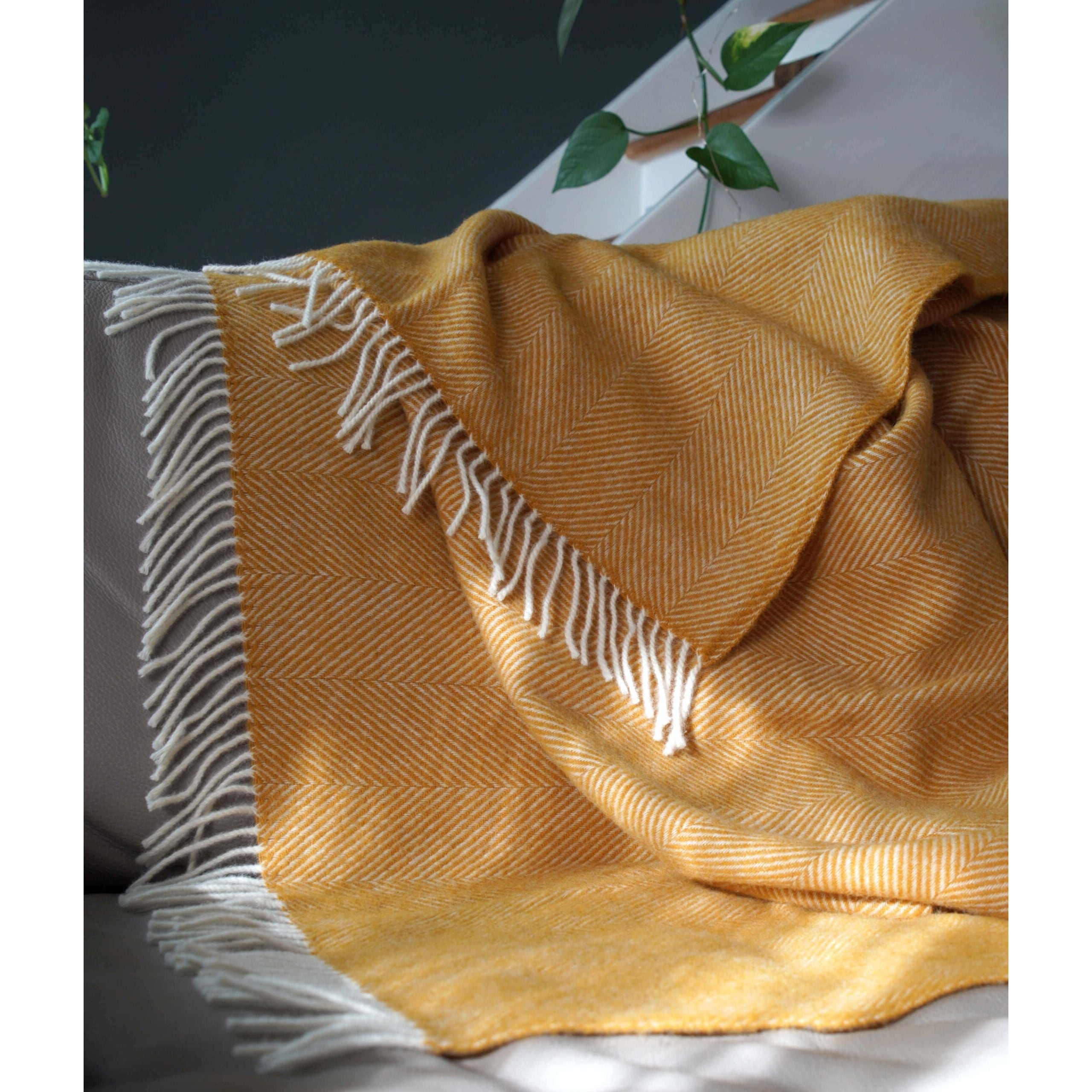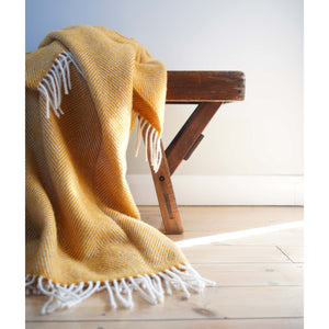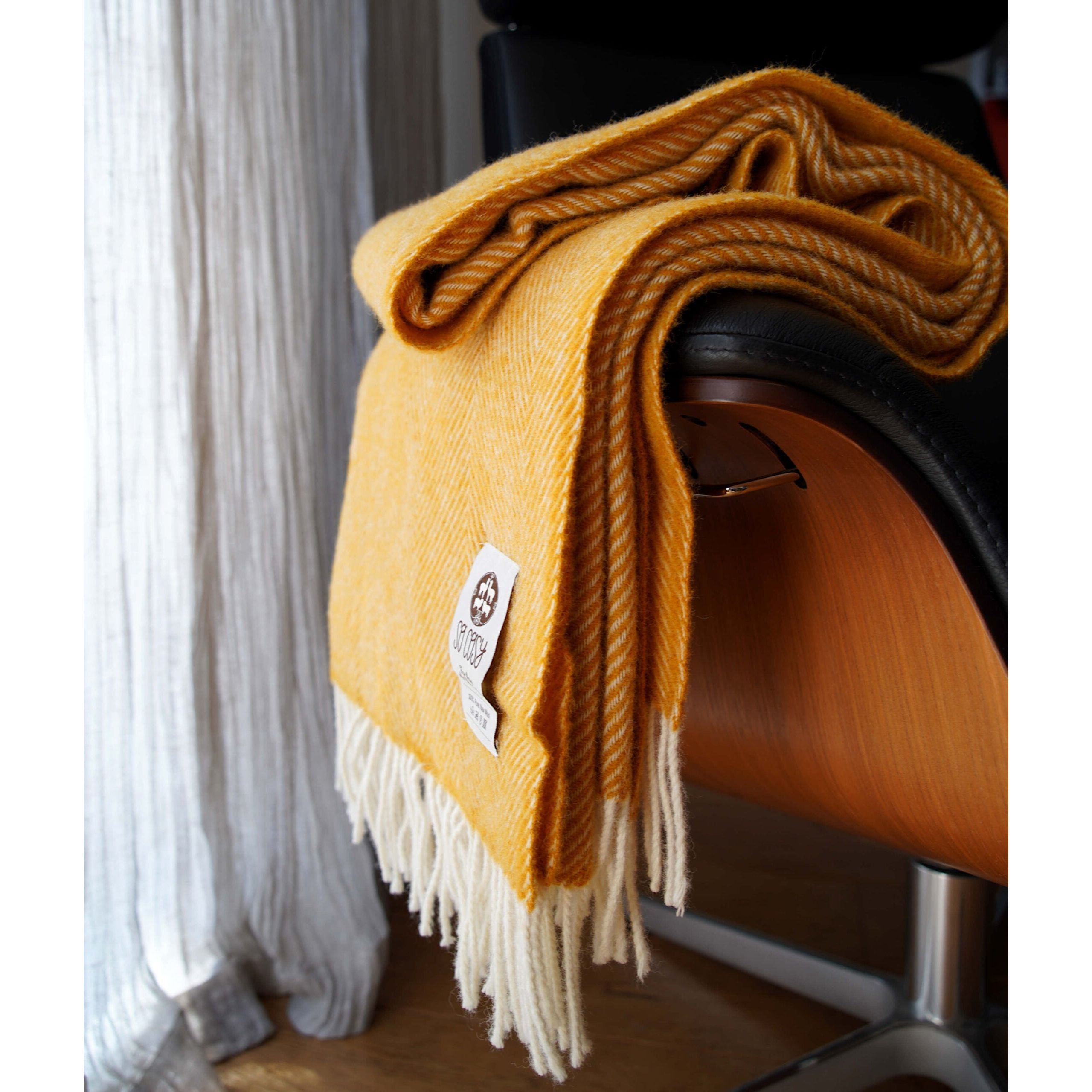 Mustard Yellow and White Pure New Wool Herringbone Dani Throw (190cm x 130cm)