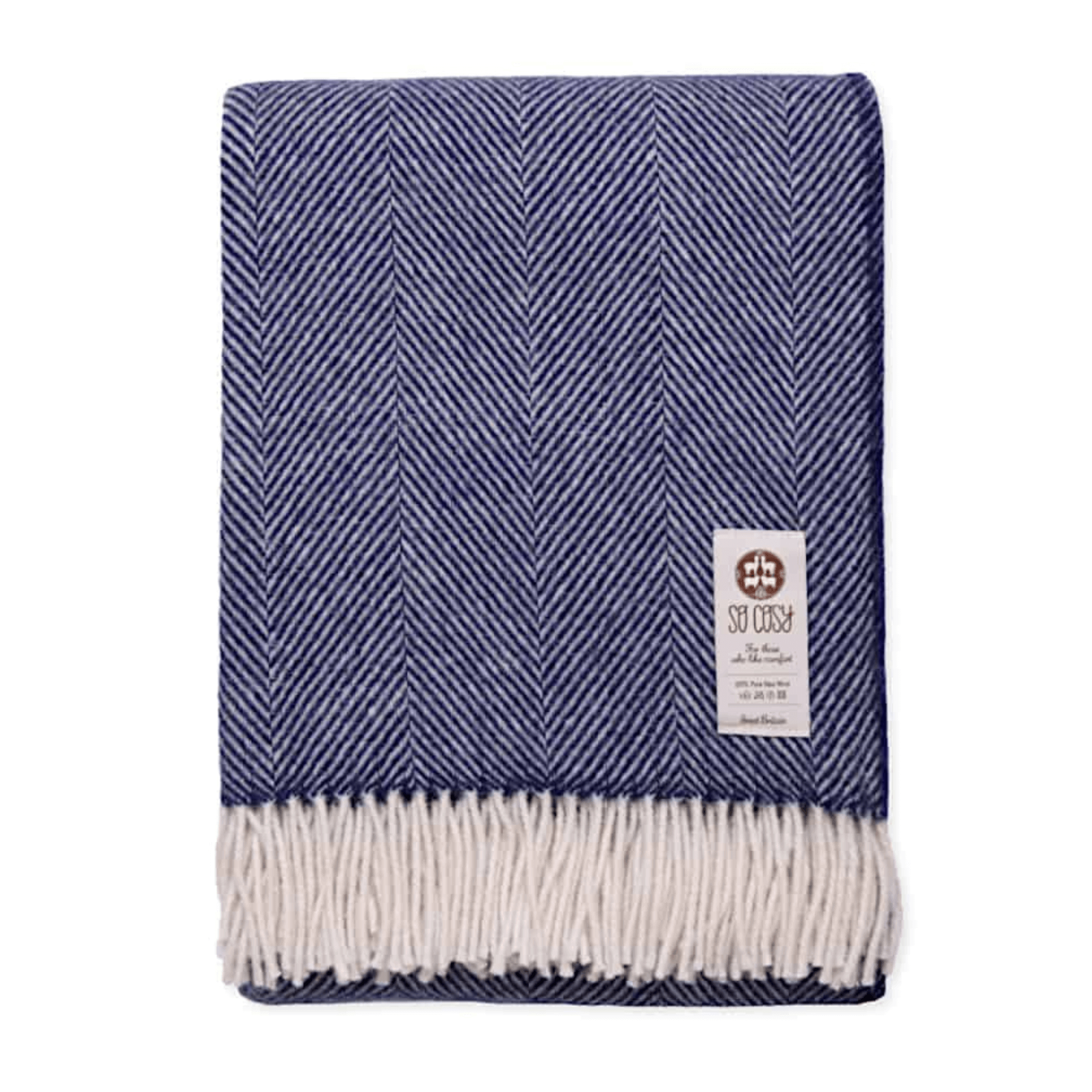 - Delicate Herringbone Pattern on Night Blue & White Bed Throw