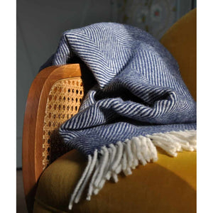Herringbone never goes out of fashion and our Dani throw is no exception. With the delicate two-tone herringbone pattern, using blue and white yarns, this pure woollen hand-finished blanket with fringed edges is an elegant and timeless piece that will perfectly complement both heritage and contemporary interiors.