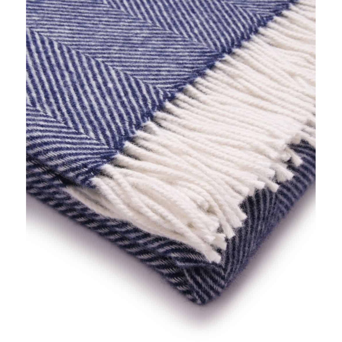 Night Blue and White Pure New Wool Herringbone Dani Throw (190cm x 130cm)