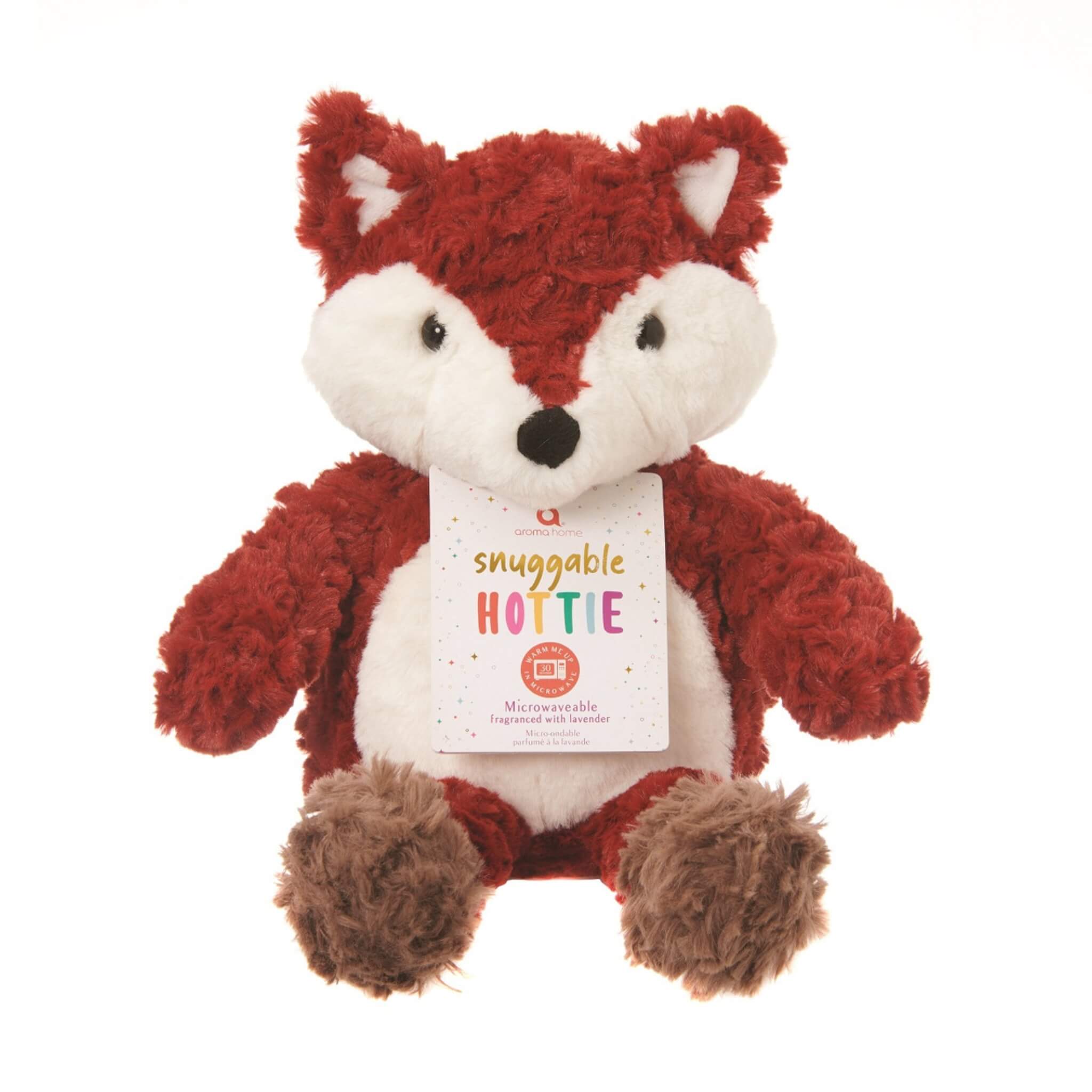 Crafted from a luxurious soft plush red faux fur fabric with a charming white chest, face and brown paws. This snuggable hottie is designed to bring warmth and cosiness to any child's sleep space. The toy features a removable calico insert filled with tourmaline ceramic beads that are infused with calming lavender pure essential oil. Simply heat the insert in the microwave (please do not heat the toy itself) to create a warm and soothing experience that helps calm your child and promotes deep sleep and relaxation.